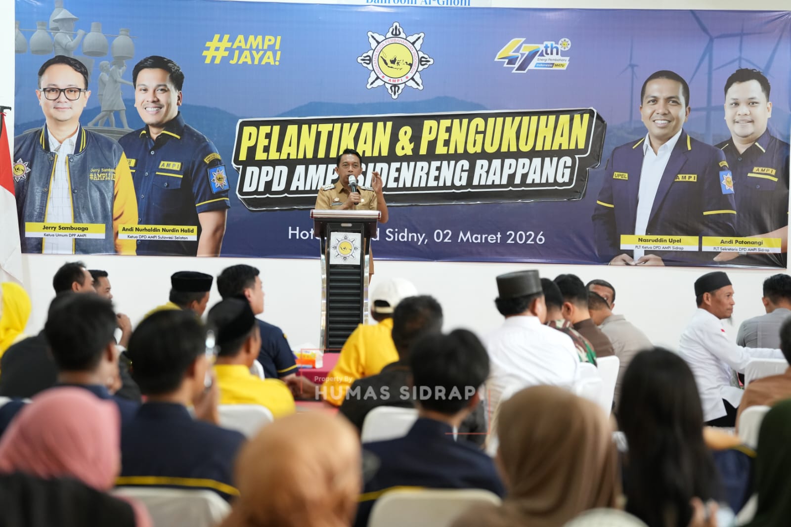 Hbdpress.com, Sidrap – Bupati Sidenreng Rappang (Sidrap), Syaharuddin Alrif, menghadiri pelantikan dan pengukuhan Dewan Pimpinan Daerah (DPD) Angkatan Muda Pembaharuan Indonesia (AMPI) Kabupaten Sidrap periode 2026–2031.