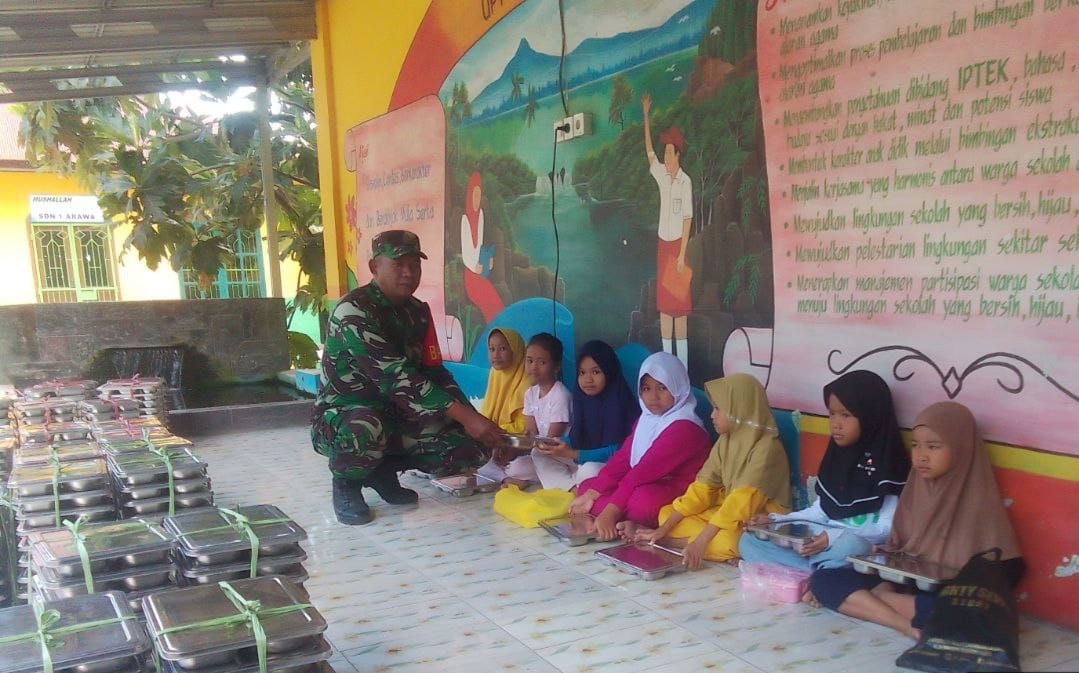Babinsa Koramil 1420-04/Watang Pulu Serma Asdar dan Serda Hasdi turut mendampingi pelaksanaan monitoring kegiatan dapur dan penyaluran makanan bergizi oleh Yayasan Bunayya Abu Afnan Al Mandary yang berlangsung di Kecamatan Watang Pulu Kabupaten Sudrap, Selasa (02/08/2025.