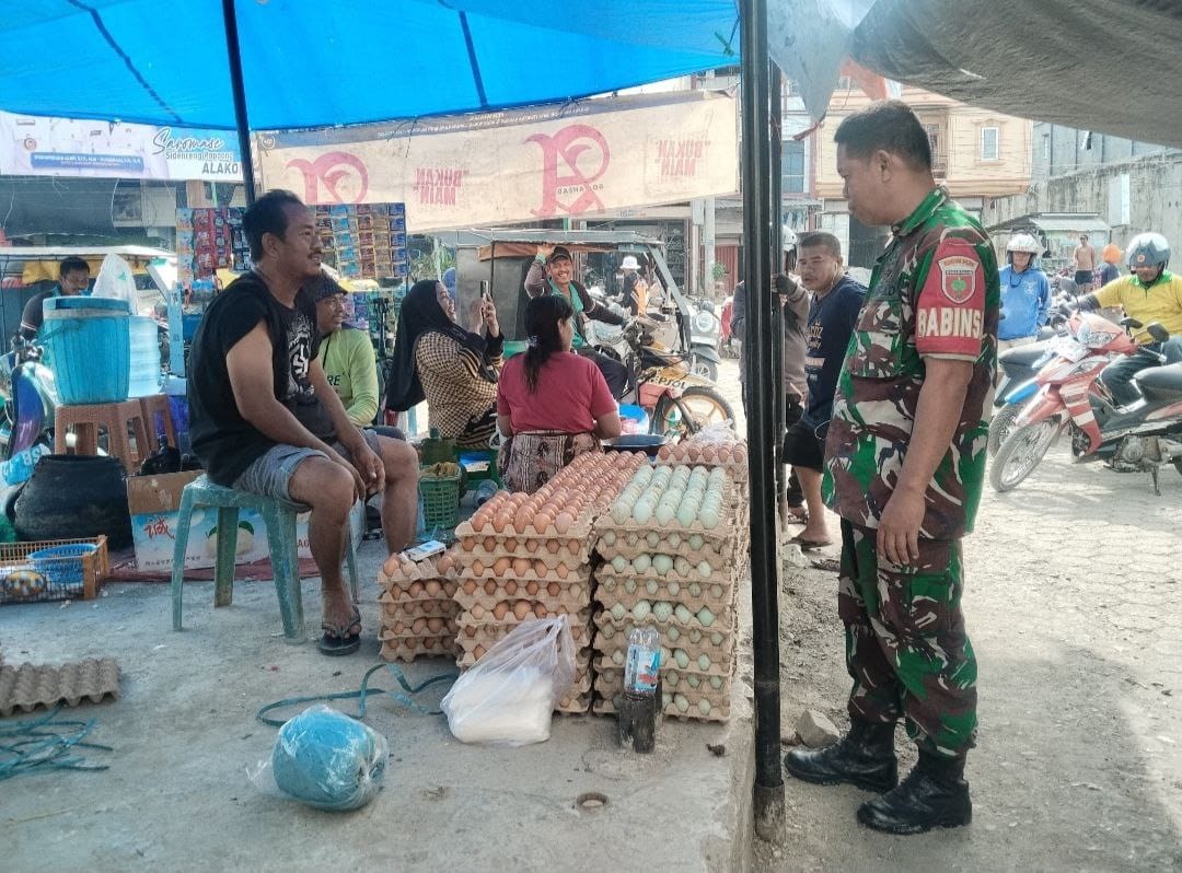 Selain memastikan ketersediaan stok agar tidak terjadi kelangkaan atau penimbunan, Babinsa juga melakukan dialog dengan para pedagang untuk mengetahui perkembangan harga dan kendala yang mungkin terjadi dalam rantai distribusi.
