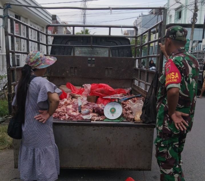 Hbdpress.com – Babinsa Kelurahan Pangkajene, Sertu Suburhan, melakukan pemantauan langsung terhadap harga dan ketersediaan bahan pokok di Pasar Sentral Pangkajene, Kecamatan Maritengngae, Kabupaten Sidrap, Senin (16/03/2026).