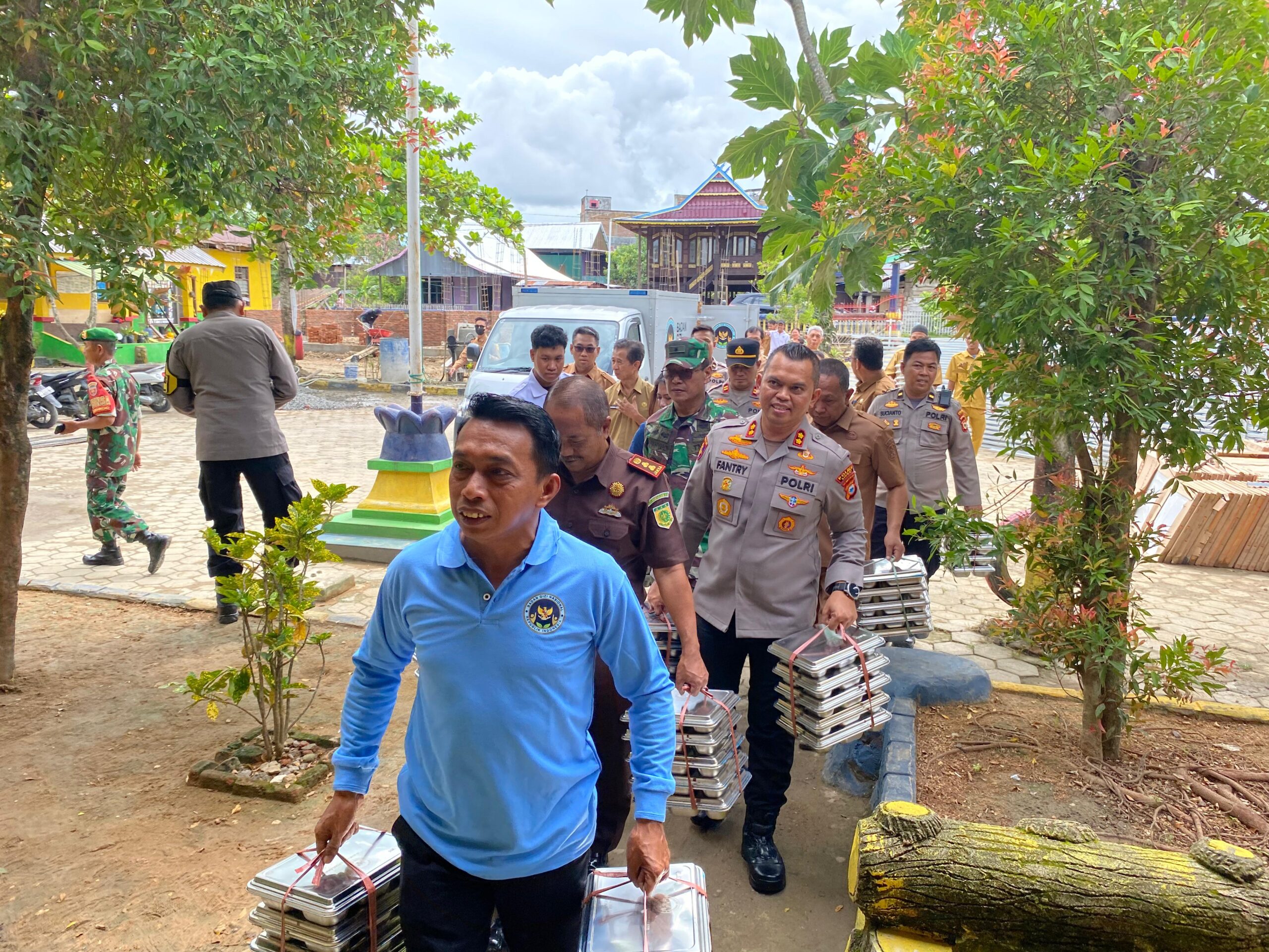 Suasana penuh tawa dan semangat tampak ketika Bupati bersama forkopimda menyerahkan kotak makanan kepada beberapa siswa secara langsung, sambil berpesan agar rajin belajar dan menjaga kesehatan.