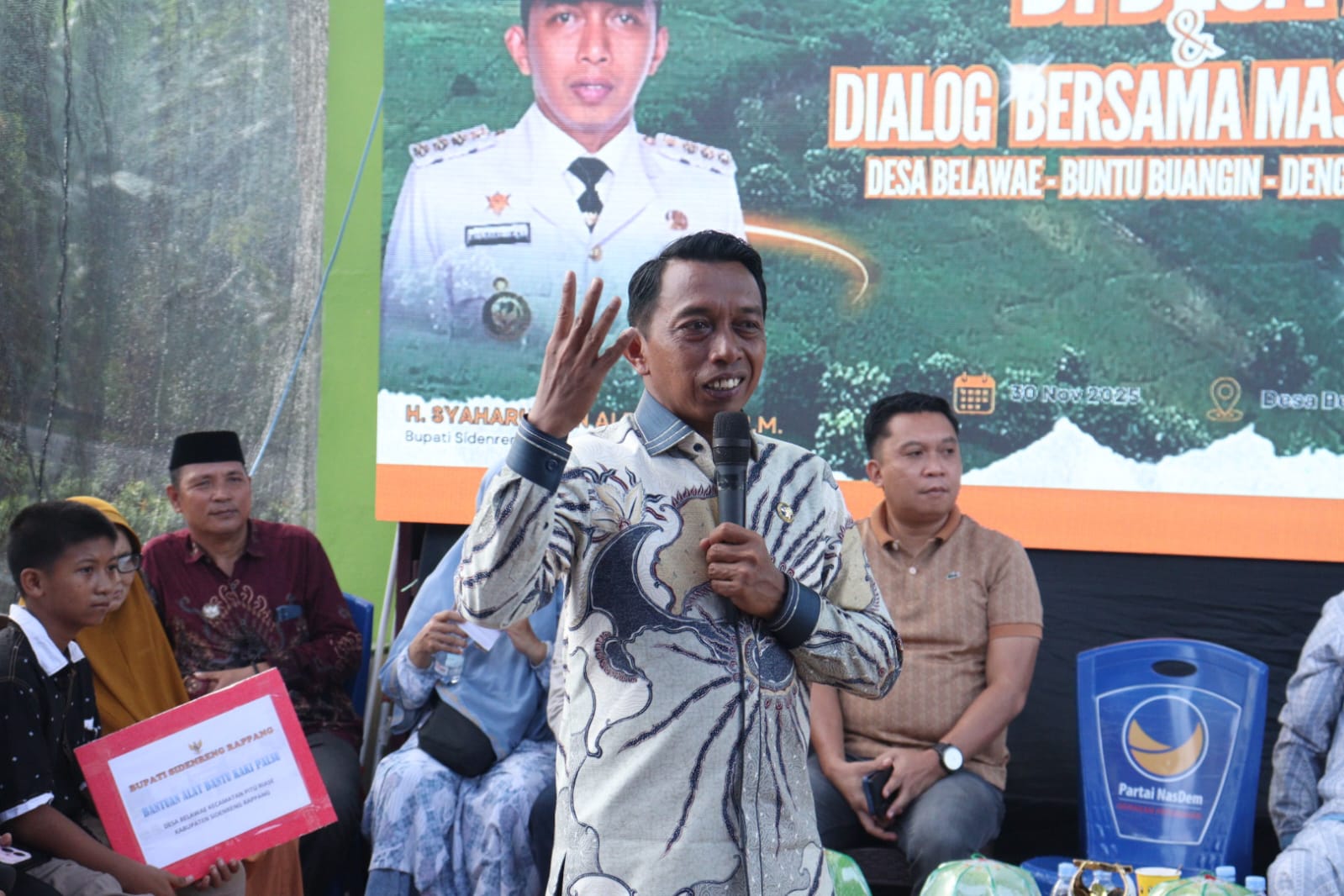 Bupati Sidenreng Rappang, H Syaharuddin Alrif, melakukan kunjungan kerja ke Kecamatan Pitu Riase, tepatnya di Desa Belawae, Ahad (30/11/2025).