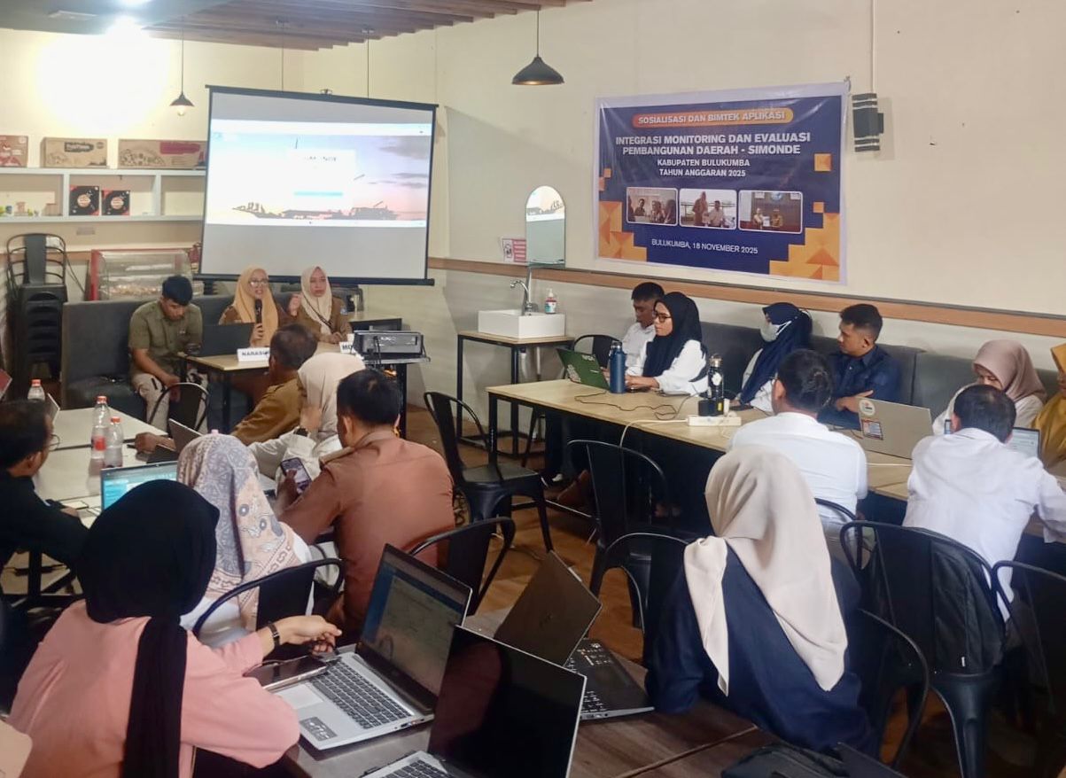 Bulukumba,– Badan Perencanaan Pembangunan, Riset, dan Inovasi Daerah (Bapperida) Kabupaten Bulukumba menggelar Sosialisasi dan Bimbingan Teknis (Bimtek) Aplikasi Integrasi Monitoring dan Evaluasi Pembangunan Daerah (SIMONDE). Kegiatan strategis ini berlangsung di DellPizza, Kelurahan Caile, Kecamatan Ujung Bulu., Selasa 18 November 2025.