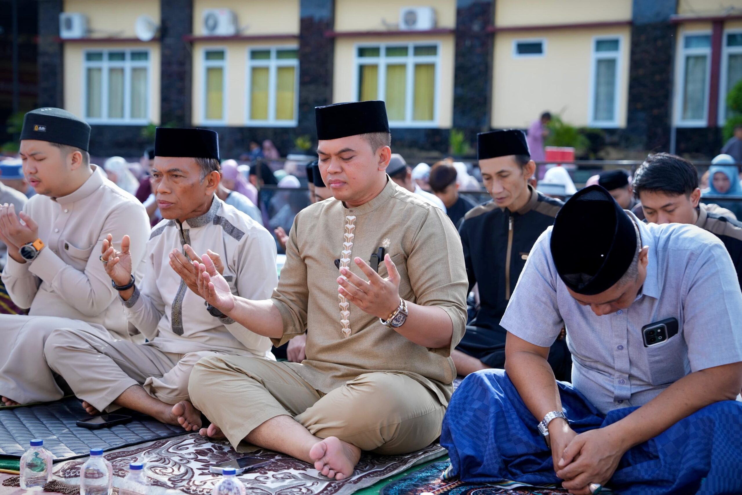 Di tengah suasana yang tenang dan penuh kesederhanaan, ratusan warga bersama personel kepolisian melaksanakan salat Id dengan khusyuk. Tidak ada kemewahan. Yang ada hanya kebersamaan—antara aparat dan masyarakat—dalam satu saf yang rapi.