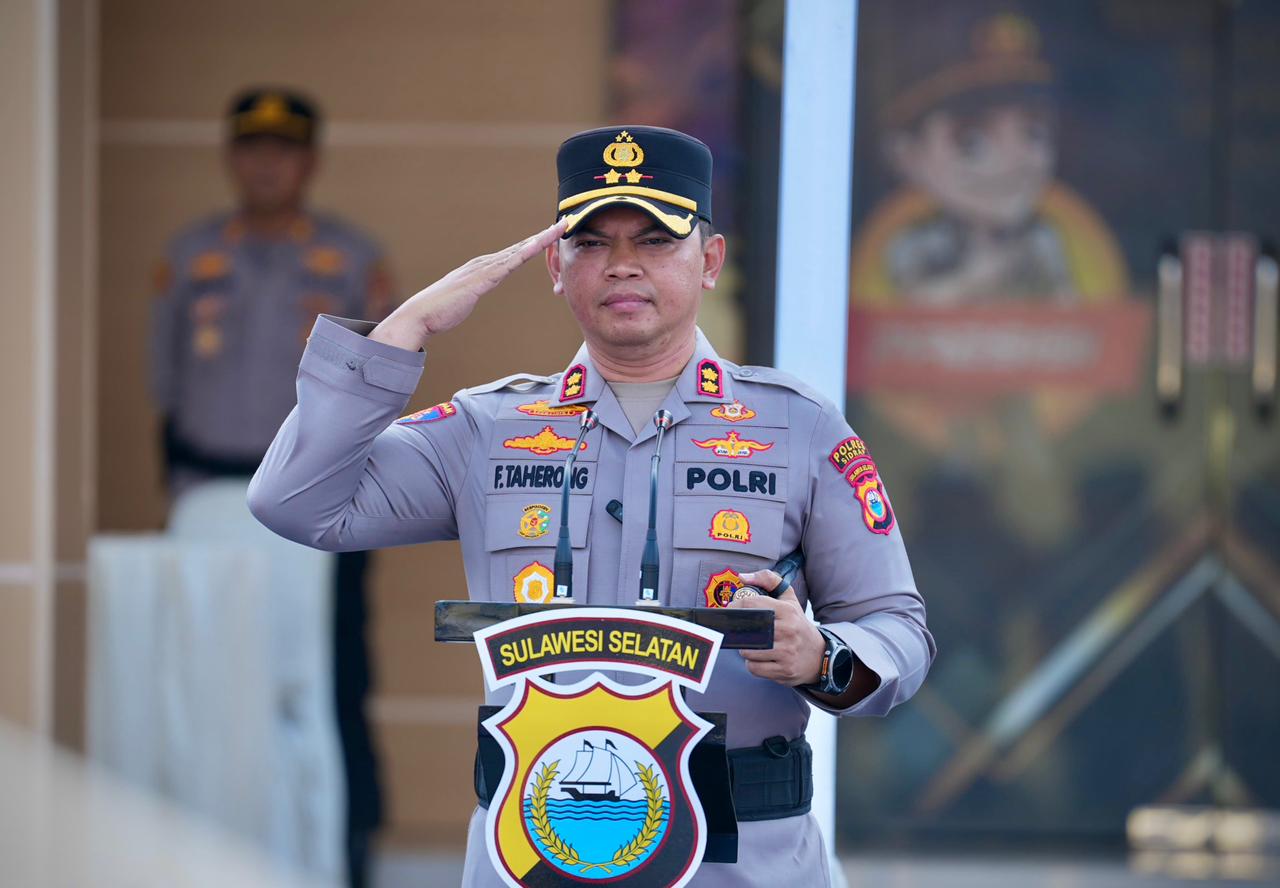 Apel gelar pasukan digelar di halaman Mapolres Sidrap. Bertindak sebagai pimpinan apel, Kapolres Sidrap AKBP Fantry Taherong.