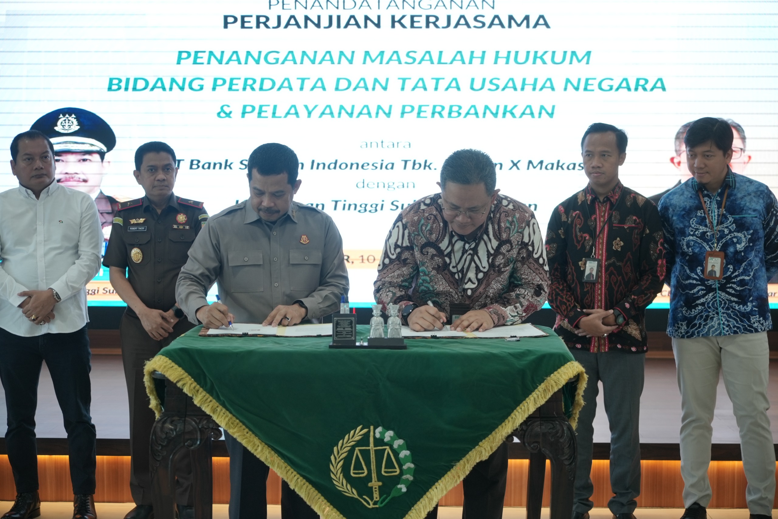 Penandatanganan tersebut dilakukan secara langsung oleh Kepala Kejati Sulsel, Agus Salim, dan Regional CEO BSI Region X Makassar, Sukma Dwie Priardi. Acara ini turut dihadiri oleh Wakil Kepala Kejati Sulsel, Robert M. Tacoy, para asisten, koordinator, serta Jaksa Pengacara Negara (JPN) pada Kejati Sulsel.