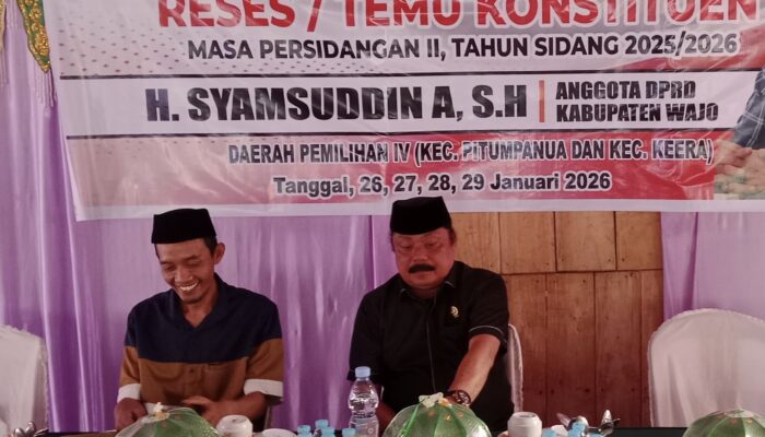 HBDPREES-COM WAJO- Anggota DPRD Kabupaten Wajo, H.Syamsuddin Ahmad, S.H., sukses menggelar agenda Reses Masa Persidangan II Tahun Sidang 2025/2026 yang dipusatkan di Kecamatan Keera, Rabu (28/1/2026). Dalam pertemuan tersebut, legislator partai Gerindra ini menyerap sedikitnya 16 poin aspirasi krusial yang mencakup infrastruktur, pendidikan, hingga isu sosial.
