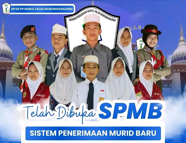Madrasah Tsanawiyah Swasta Pondok Pesantren Nurul Falah Borongganjeng, Desa Garuntungan, Kecamatan Kindang, secara resmi mengumumkan pembukaan Sistem Penerimaan Murid Baru (SPMB) Tahun Ajaran 2026/2027. Pendaftaran dilaksanakan dalam dua gelombang.