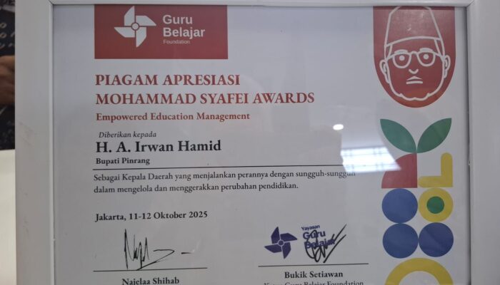 Dalam keterangan yang disampaikan, penghargaan ini menjadi bukti nyata bahwa Pemerintah Kabupaten Pinrang terus berkomitmen memberikan perhatian serius terhadap dunia pendidikan, baik dari sisi peningkatan kapasitas tenaga pendidik maupun pemerataan akses pendidikan yang berkualitas bagi seluruh masyarakat.