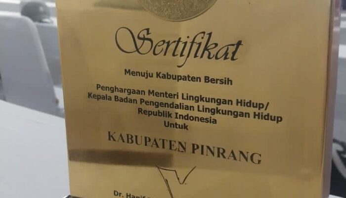 Pinrang HBDperss.com : Komitmen Pemerintah Kabupaten Pinrang dalam mewujudkan lingkungan yang bersih dan nyaman kembali mendapat pengakuan di tingkat nasional.
