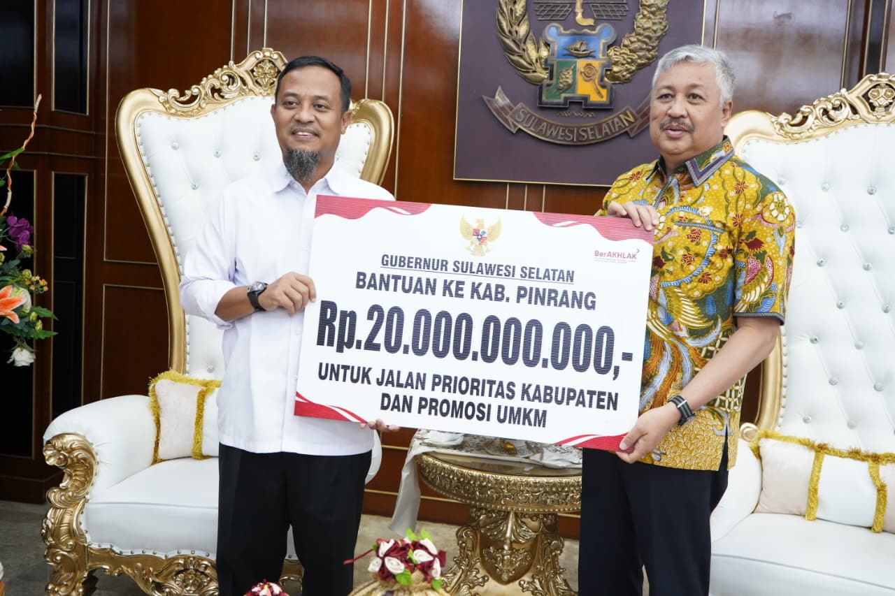 Hal ini ditandai dengan penyerahan secara simbolis bantuan keuangan dari Pemerintah Provinsi Sulawesi Selatan kepada Pemerintah Kabupaten Pinrang yang diterima langsung oleh Bupati Pinrang H. A. Irwan Hamid, S.Sos dari Gubernur Sulawesi Selatan A. Sudirman Sulaiman, di Rumah Jabatan Gubernur Sulawesi Selatan, Kamis (16/10).