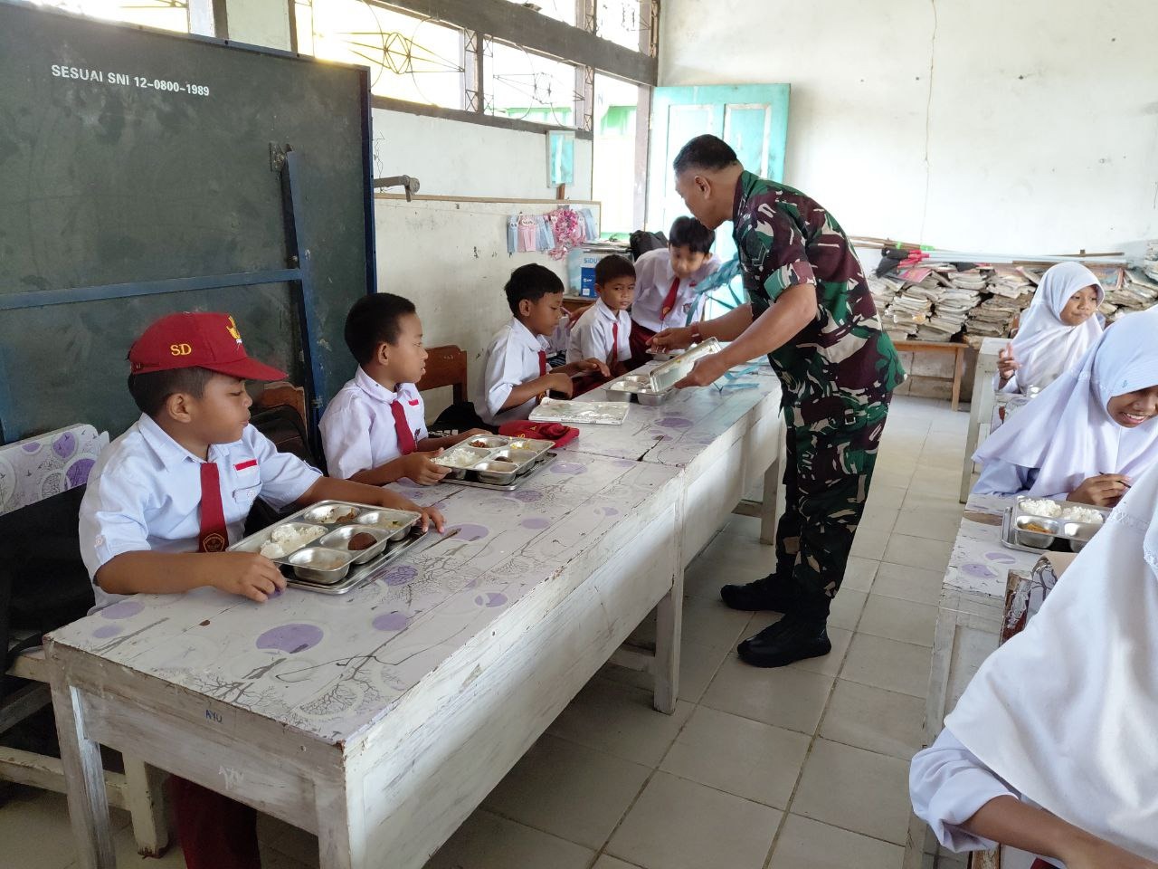 “Kami selaku Babinsa akan selalu aktif melaksanakan pendampingan pendistribusian MBG untuk memastikan bahwa pendistribusian makan bergizi gratis bisa berjalan tepat waktu, tertib, aman dan lancar serta tidak ada kekurangan ataupun kelebihan jumlah porsi makanan sesuai dengan jumlah siswa”, Tutup Serka Ramli.