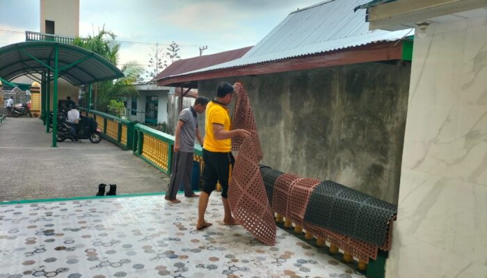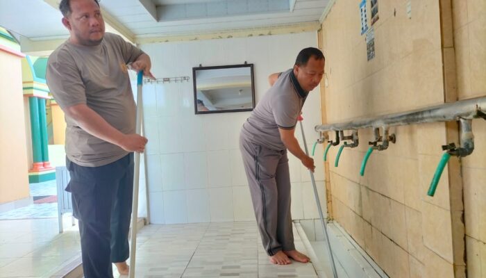 Personel Polsubsektor Watang Sidenreng Laksanakan Kegiatan Jum’at Bersih di Masjid Nurul Amin