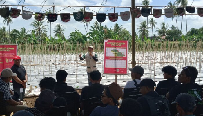 Hamka selaku Area Produck Development (APD) cap panah merah “Learning Farm Pinrang terbuka untuk umum dimana lokasi ini sebagai pusat pembelajaran, diskusi dan sharing informasi terkait bidang pertanian hortikultura untuk menjawab tantangan para petani yang di hadapi dilapangan”.