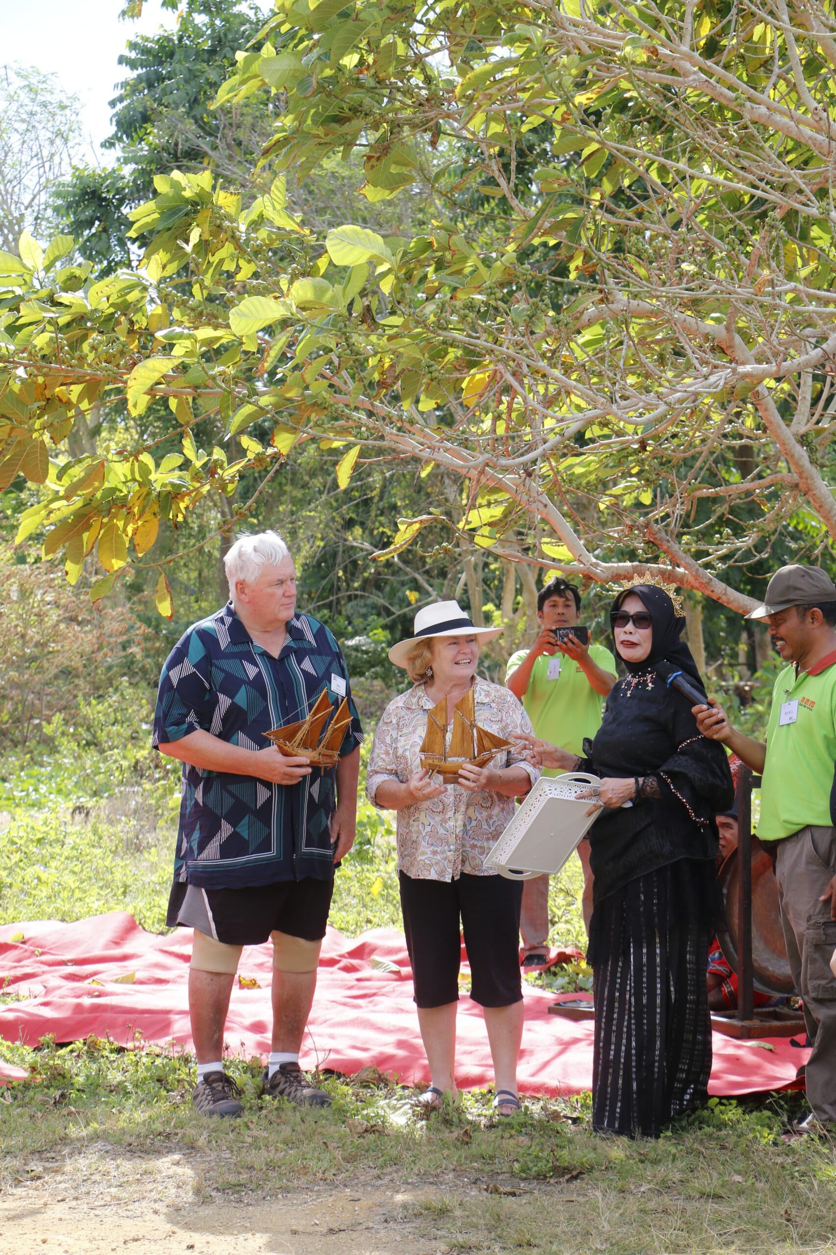 Acara penyambutan berlangsung khidmat namun meriah. Suasana kekeluargaan terasa saat Kadisparpora menyerahkan cenderamata berupa miniatur Pinisi kepada salah satu wisatawan yang kebetulan sedang berulang tahun.