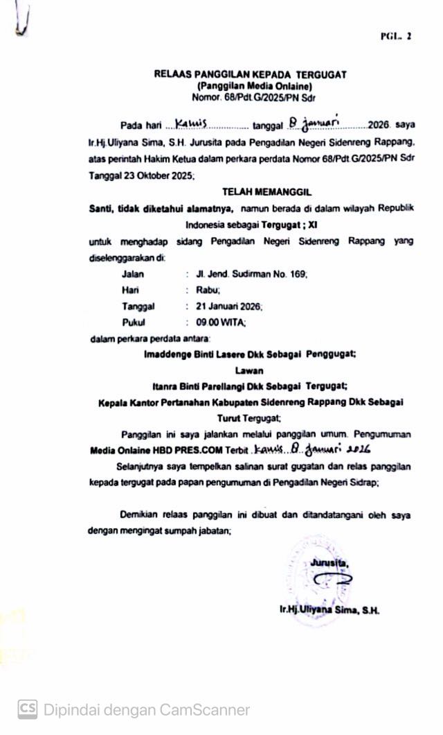 atas perintah Hakim Ketua dalam perkara perdata Nomor 68/Pdt.G/2025/PN Sdr,