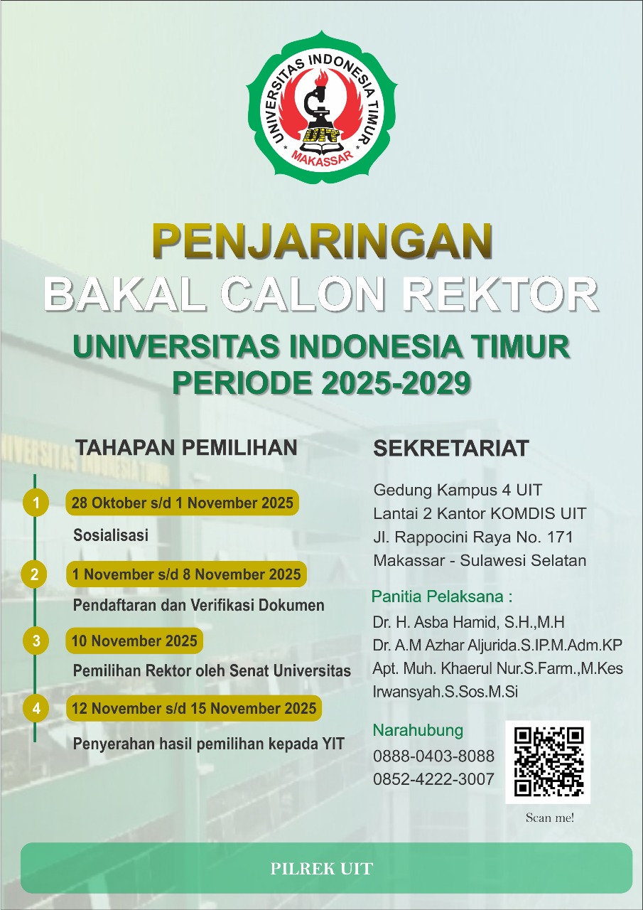 Kegiatan ini menjadi langkah awal menuju pemilihan pemimpin baru di Universitas Indonesia Timur yang diharapkan mampu membawa kemajuan, integritas, dan visi akademik yang berdaya saing untuk periode lima tahun mendatang.