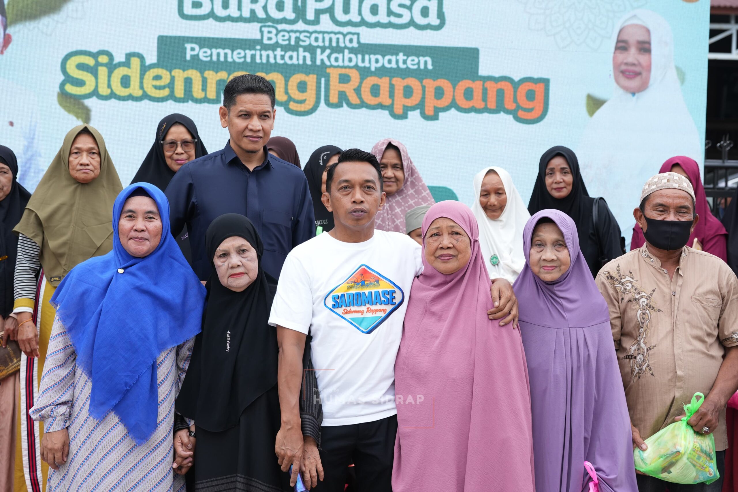 Bupati Sidrap Syaharuddin Alrif hadir jelang waktu berbuka puasa dan menyerahkan langsung bantuan sembako kepada warga.