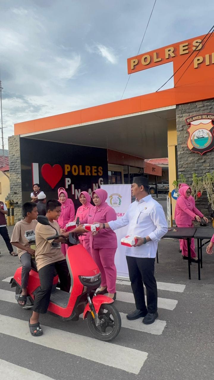Kehadiran pengurus Bhayangkari Cabang Pinrang menambah nuansa kekeluargaan dalam kegiatan tersebut. Para ibu Bhayangkari dengan ramah memberikan semangat kepada para pengendara agar tetap mengutamakan keselamatan lalu lintas meskipun sedang terburu-buru mengejar waktu berbuka di rumah masing-masing.