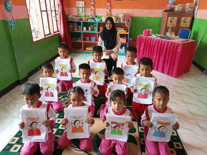 Kegiatan ini diisi dengan pembelajaran bertema perjuangan Raden Ajeng Kartini, di mana para siswa diajak mengenal sosok Kartini sebagai pelopor emansipasi perempuan di Indonesia. Melalui aktivitas menggambar dan mewarnai, anak-anak mengekspresikan pemahaman mereka tentang tokoh inspiratif tersebut.