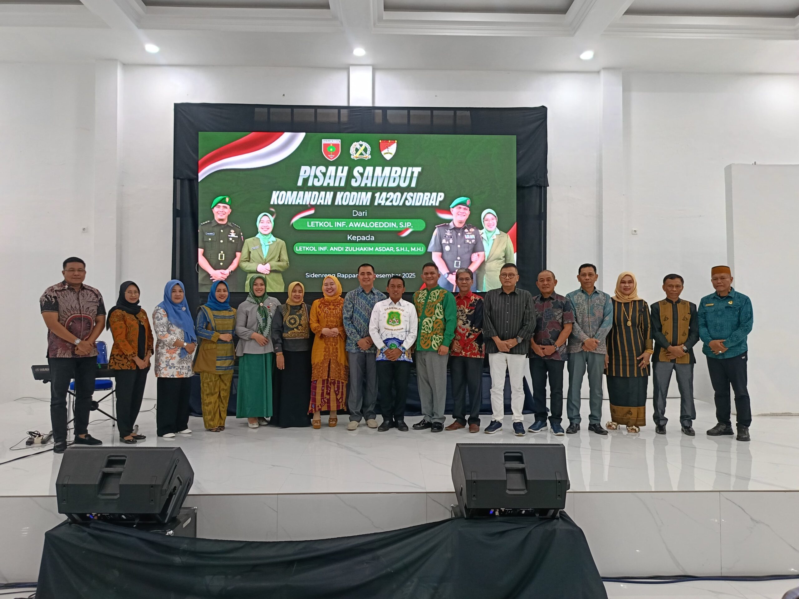 Hbdpress.com, Sidrap – Suasana hangat dan penuh kekeluargaan mewarnai acara pisah sambut Komandan Kodim 1420/Sidrap dari Letkol Inf Awaloeddin, S.I.P., kepada Letkol Inf Andi Zulhakim Asdar, S.Hub.Int., M.H.I., Kamis malam (4/12/2025).