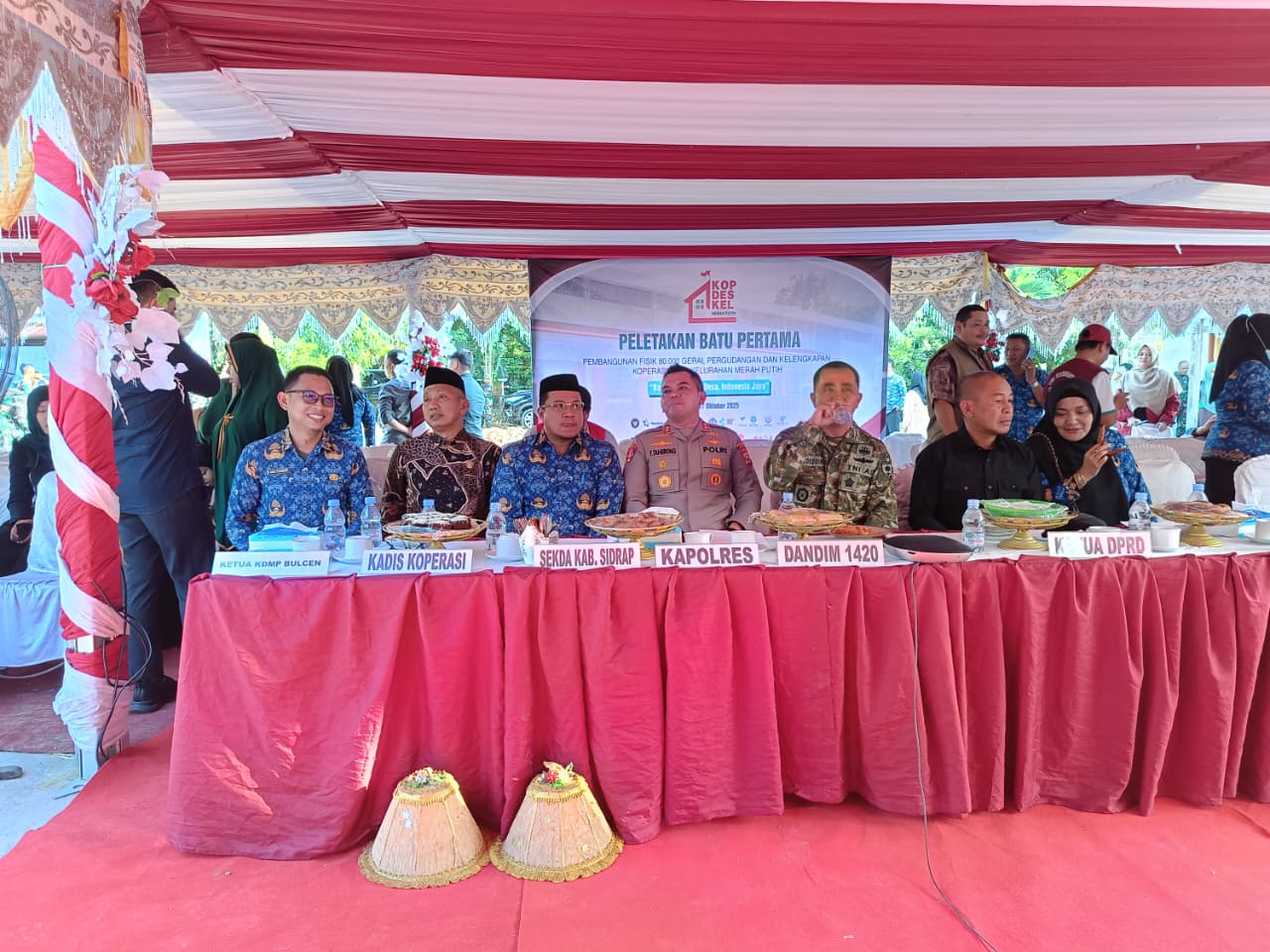 Hdpress.com, Sidrap – Kabupaten Sidrap menyukseskan Gerakan Nasional Peletakan Batu Pertama Pembangunan Fisik 80.000 Gerai, Pergudangan, dan Kelengkapan Koperasi Desa/Kelurahan Merah Putih yang digelar serentak di seluruh Indonesia, Jumat (17/10/2025).