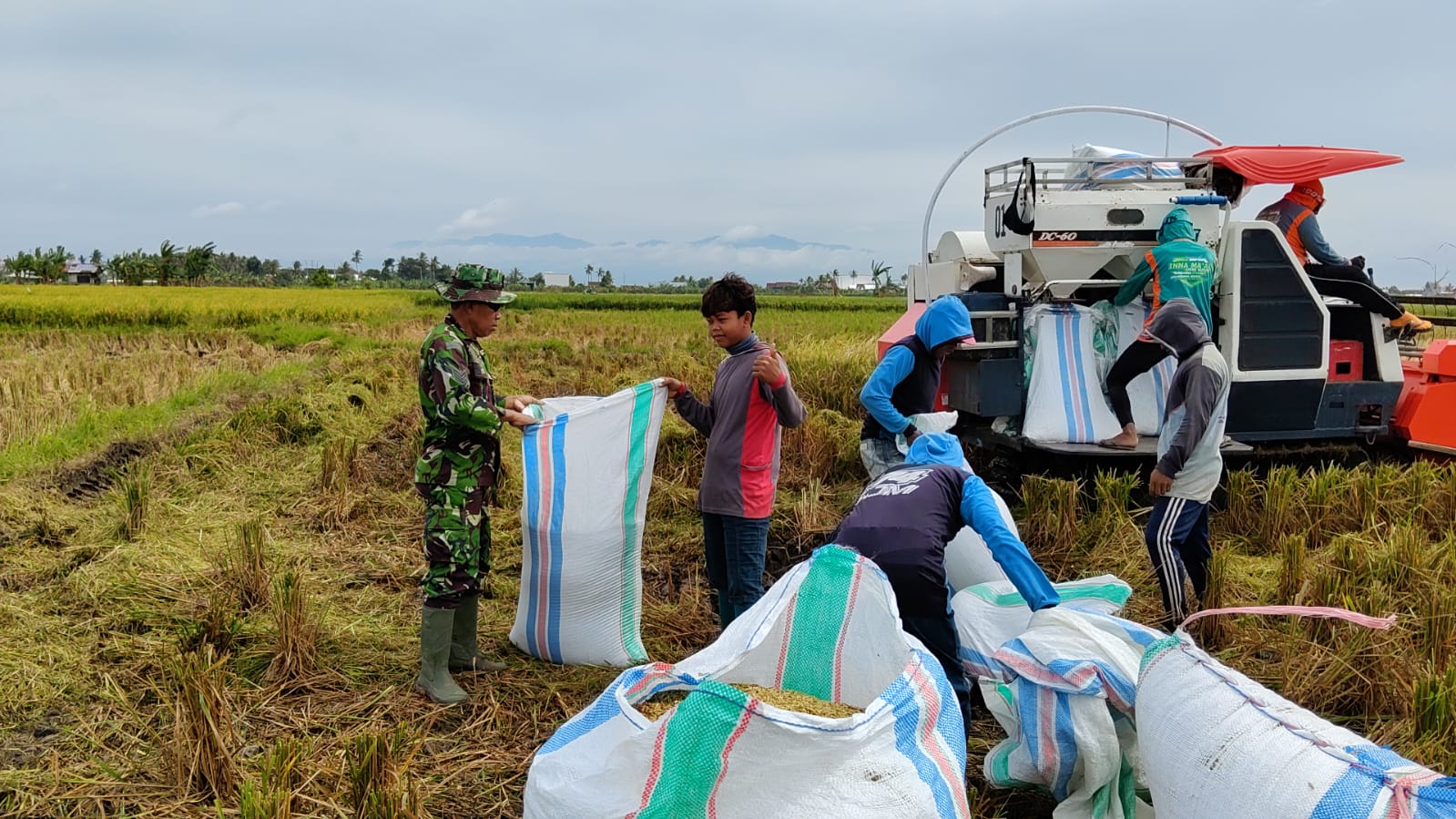 Sinergi TNI dan Petani, Babinsa Sereang Dampingi Panen Padi Kelompok Tani Mamminasae 2