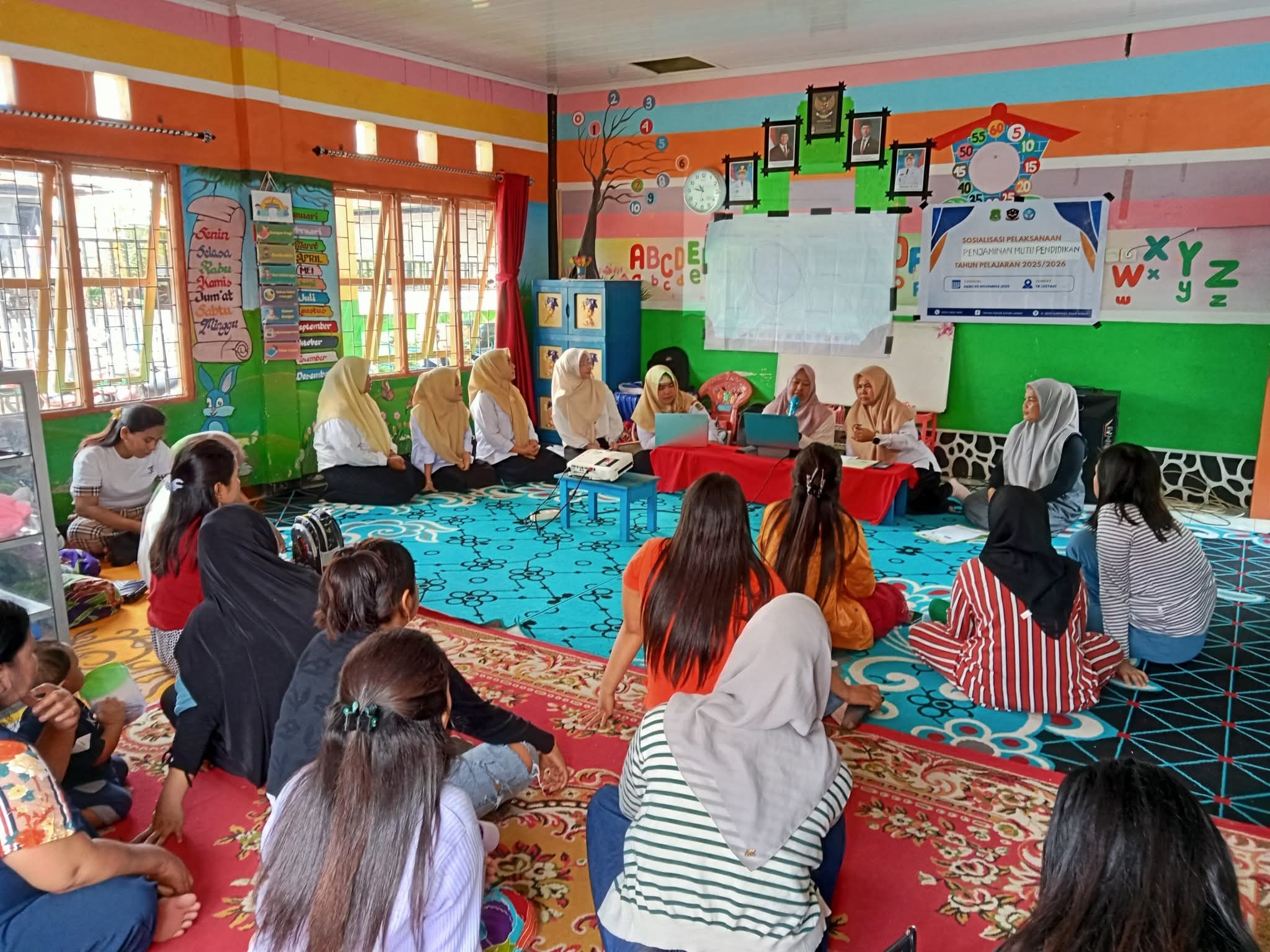 Acara berlangsung di ruang kelas TK Lestari dengan suasana hangat dan interaktif. Kegiatan dipandu oleh pendamping dari satuan pendidikan yang memberikan penjelasan mengenai pentingnya sistem penjaminan mutu pendidikan sebagai acuan dalam meningkatkan kualitas pembelajaran anak usia dini.